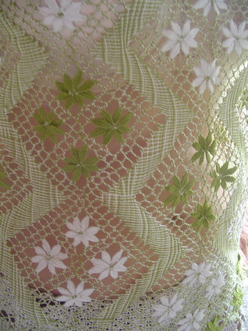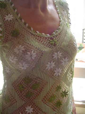 This green and white lace top is 100% handmade and 100% cotton. It takes about three days of full time work to create the top.