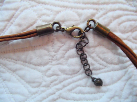 100% handmade necklace with polished agate semi-precious gemstones set on a metal background.