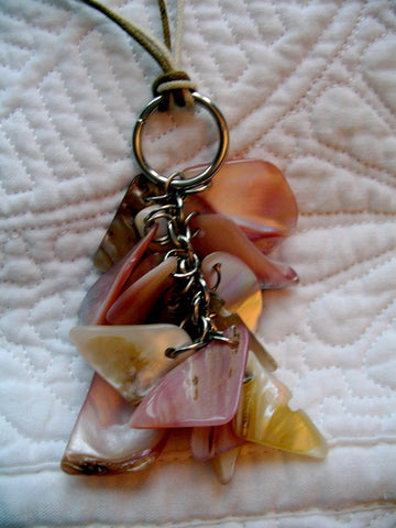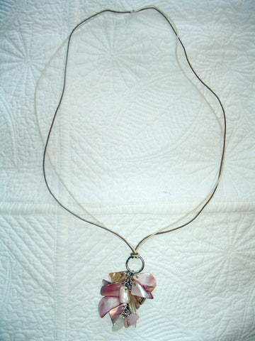 Sometimes a simple piece makes the biggest statement. This simple cord necklace with playful mother-of-pearl pendant is an easy accessory to combine with virtually everything!